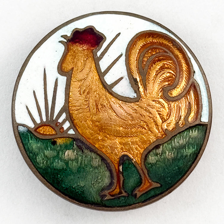Basse-taille enamel rooster crowing at sunrise. 20th C. Div. I Size L 1 1/4"