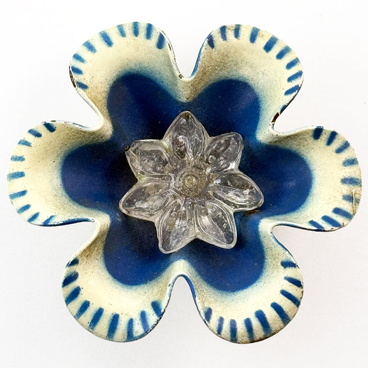 Fun vintage button with glass center in paint-coated metal. 20th C. Div. III Size XL 2 1/16"