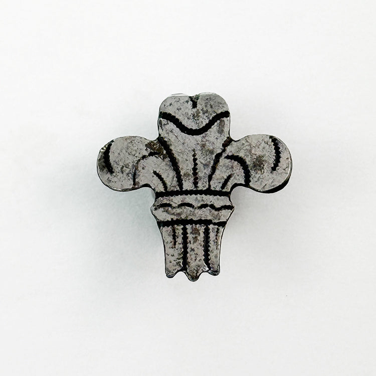 Three cut & engraved steel plumes arranged in the Prince of Wales heraldic badge. 19th C. Div. I Size S 3/4"