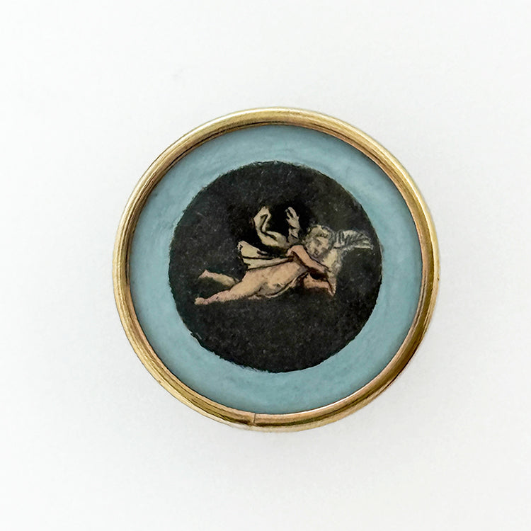 Painted on paper, he carries a seashell on his shoulder. Scarce size. Late 18th/Early 19th C. Div. I Size M 7/8"