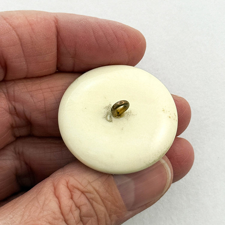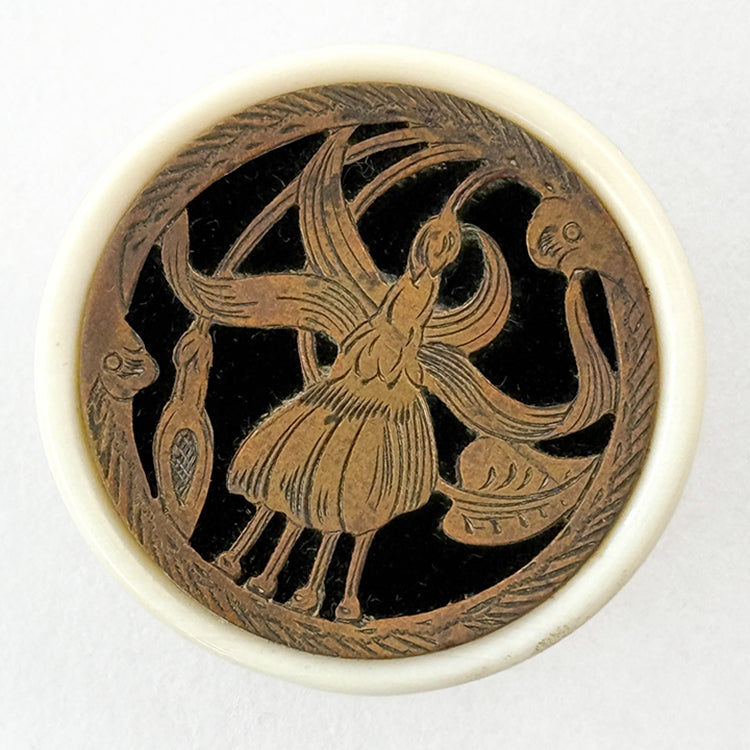 Pierced & engraved metalwork fuschia blossom backed with black velvet and set into a cup of natural material. 19th C. Div. I Size L 1 5/16"