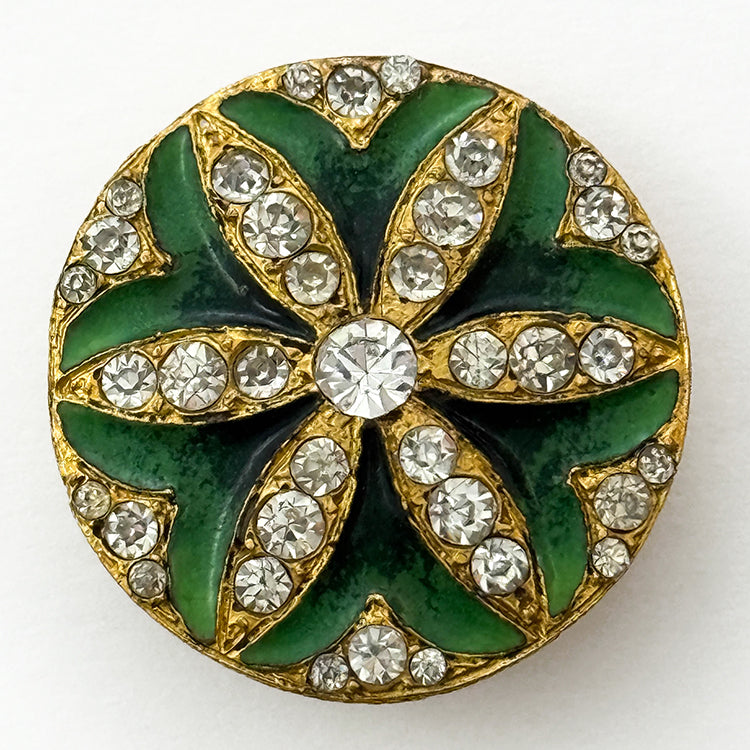 Gilded metalwork with elaborate cup-set paste embellishment in a hexafoil rosette pattern. 19th C. Div. I Size M 1 3/16"