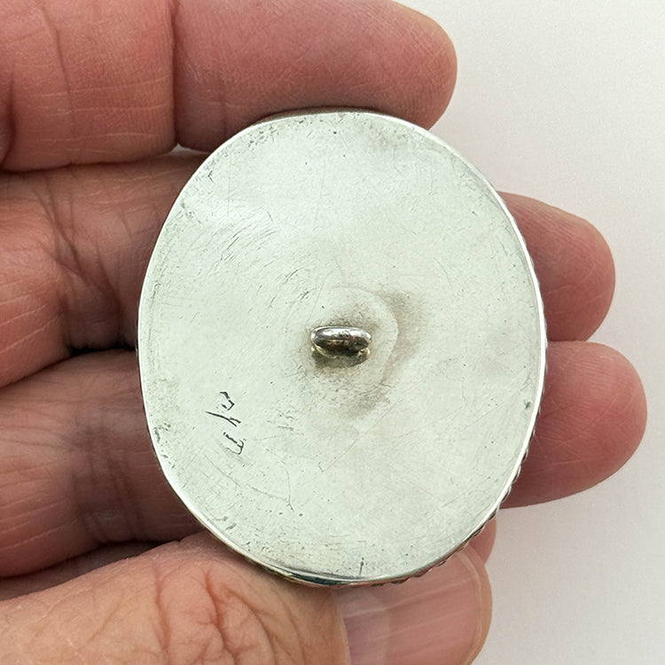 Large oval carved helmet shell in silvered metal with applied rope-twist border. Based on Antonio Canova's 18th-century painting "The Three Graces Dancing." Backmarked. Late 19th/Early 20th C. Div. I Size L 1 3/4"