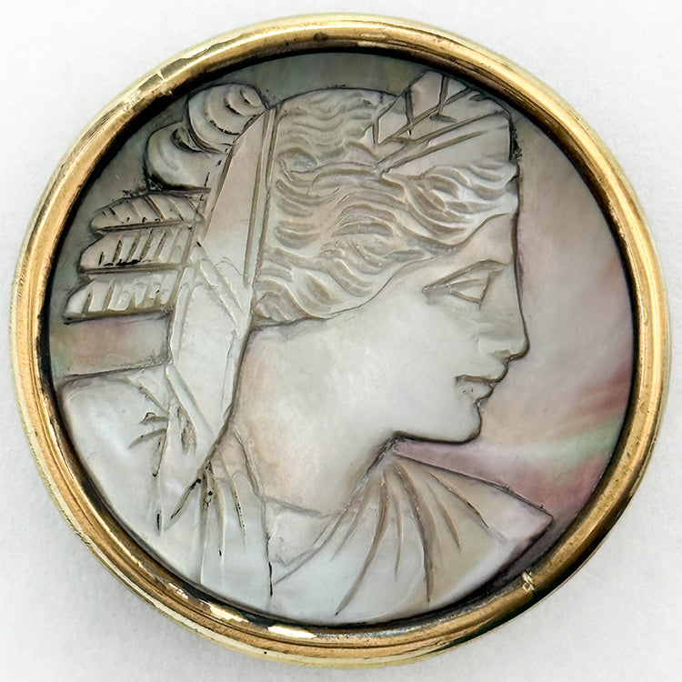 Very large iridescent shell set in brass. Late 19th/Early 20th C. Div. I Size L 1 7/8"