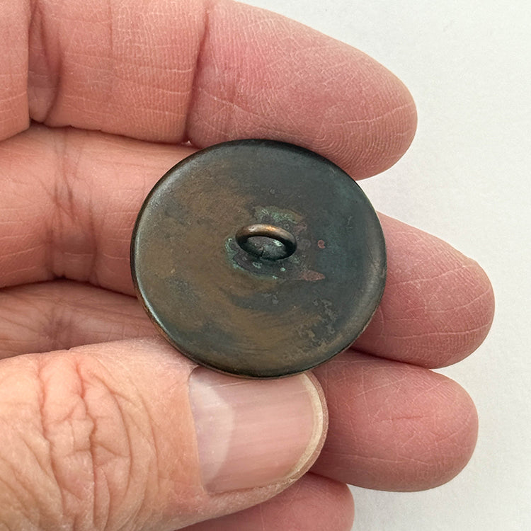 Victorian-era architectural landscape in decoupage over hand-painted background. 19th C. Div. I Size M 1 1/8"